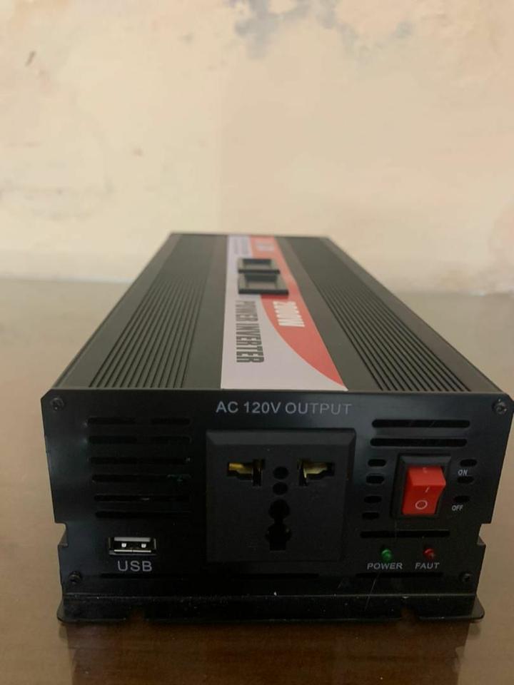 Se conecta a un Acumulador de 12 volt y de ahi a la entrada de corriente del hogar y da electricidad de hssta 120 volt para varias luces y equipo dela casa