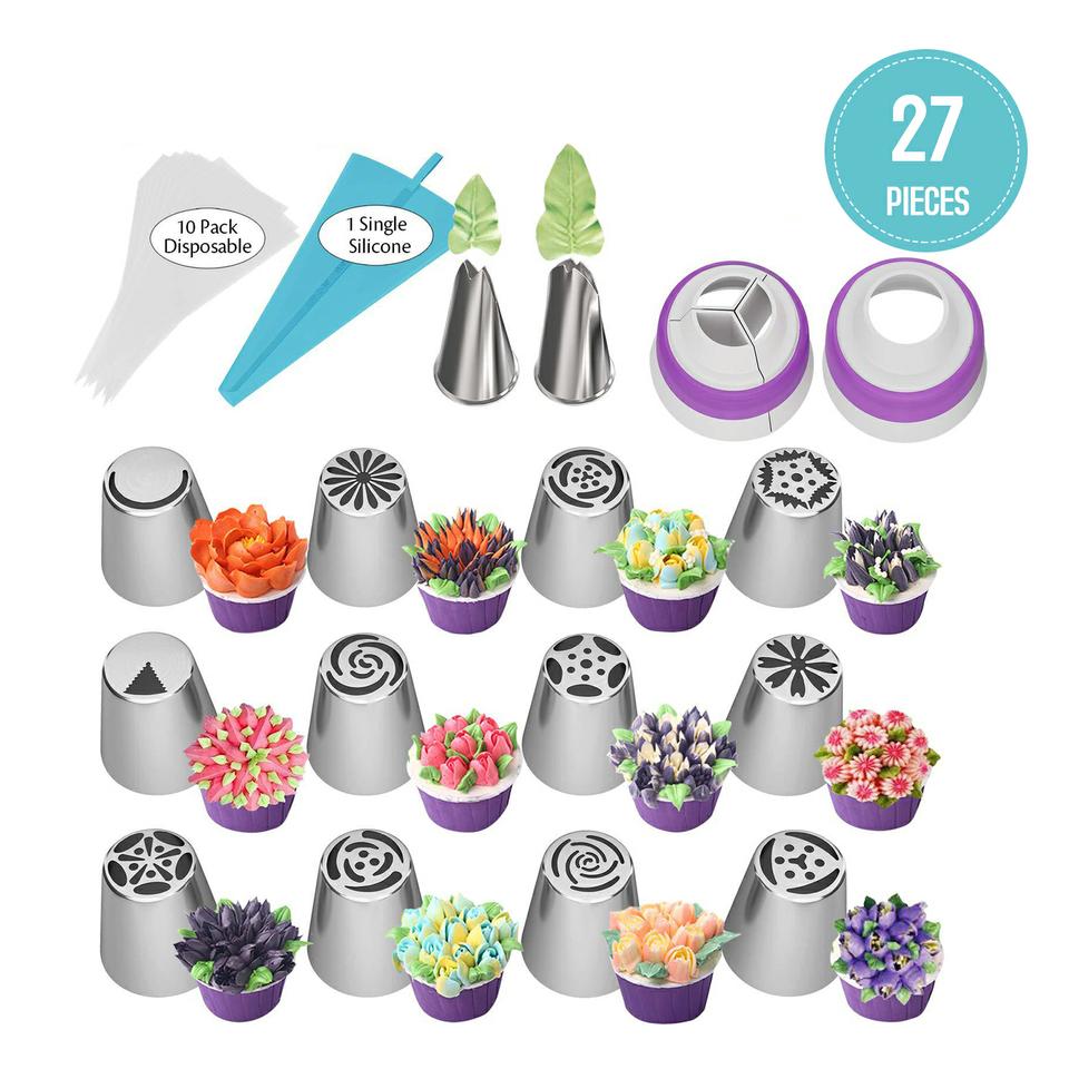 KIT MANGA PASTELERA BOQUILLAS RUSAS DE FLORES 27 en 1 [ 3000.00 ]
